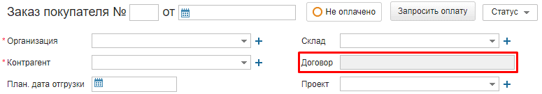 Номером договора является номер заказа или выбранный в соответствующем поле договор.